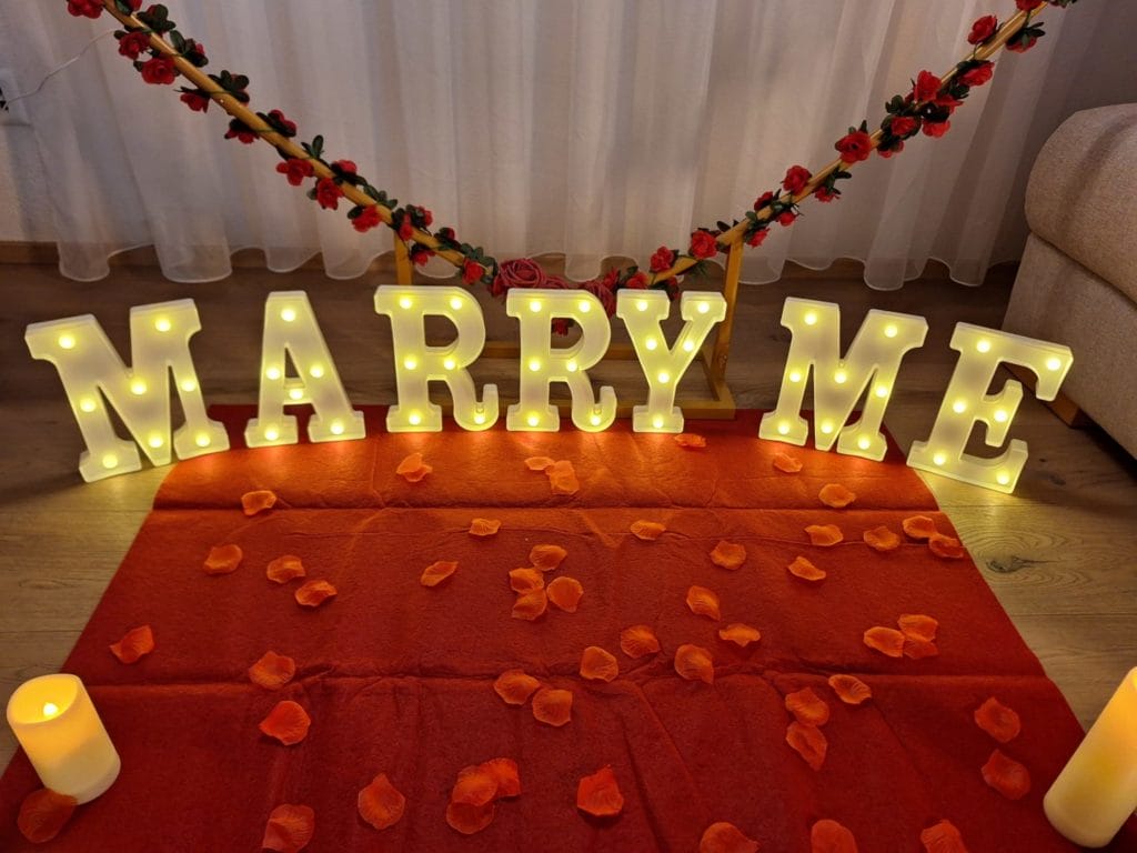 - eine kunstvolle "Marry Me" Überraschungsdekoration (CHF 200.-)