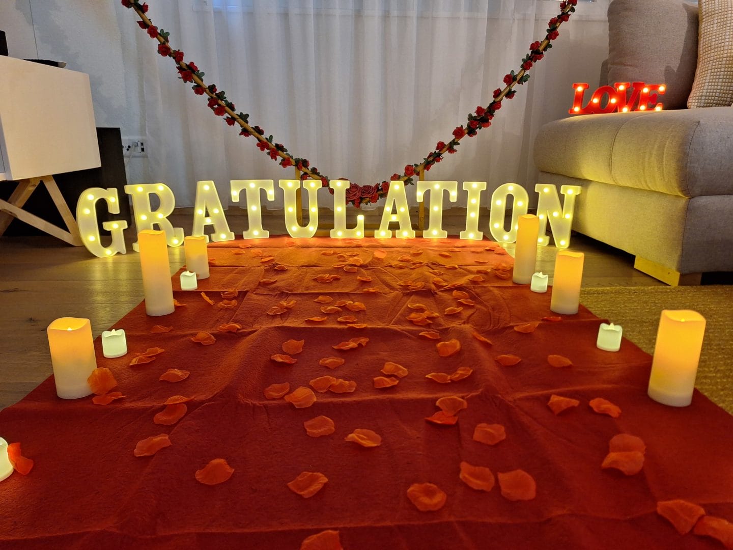 - eine kunstvolle "Marry Me" Überraschungsdekoration (CHF 200.-)