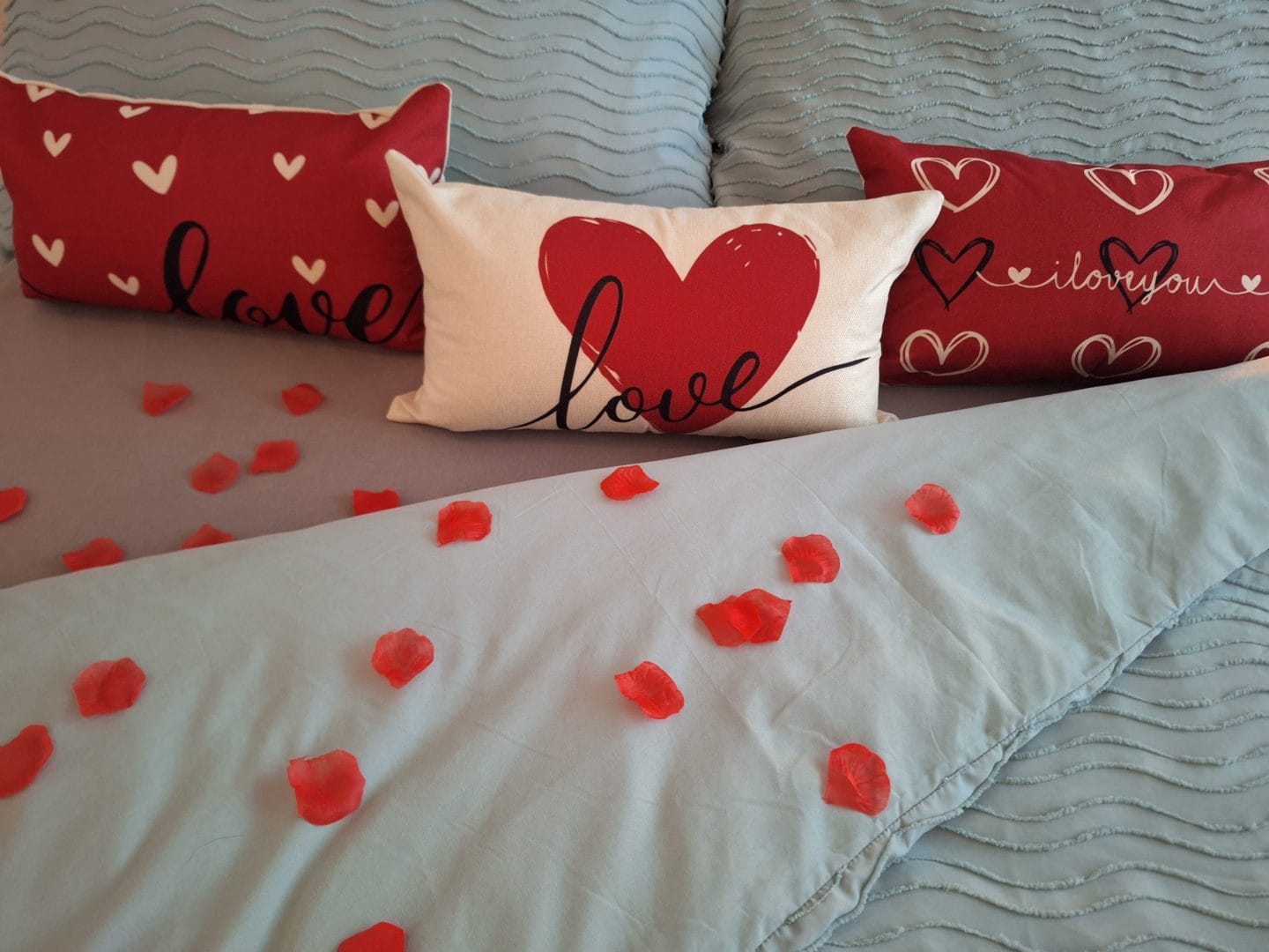 Sie laden Ihren Liebsten oder Ihre Liebsten für ein verlängertes Wochenende in unsere Wohnresidenz Casa Fortuna ein. Die Eingangstüre zur stilvoll eleganten Deluxe-Wohnung öffnet sich und auf den Beglückwünschten wartet eine grossartige Gratulationsüberraschung "Happy Birthday" bzw. "Gratulation" in dekorativen Grossbuchstaben, ein mit Kerzen umgebener roter Teppich, ein Boden voller Rosenblüten, ein grosser Bogen mit Rosen, Champagner mit Piatti fredi und dazu festliche Musik. Das Bett ist geschmackvoll dekoriert.